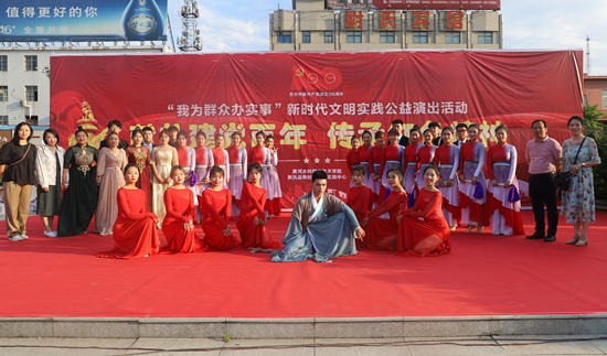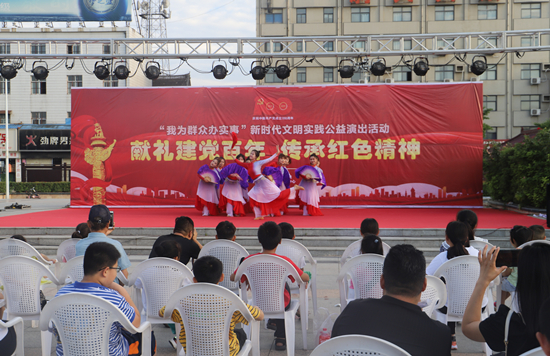 为隆重庆祝中国共产党成立100周年,回顾党的光辉历程,讴歌党的丰功伟绩,6月19日,B体育平台走进尉氏县新时代文明实践中心开展“献礼建党百年 传承红色精神”党史学习教育公益演出活动。活动在尉氏县青霞广场举办,近300名基层党员和群众共同学党史,颂党恩,唱红歌,跟党走,向伟大的党献上最真挚的祝福。