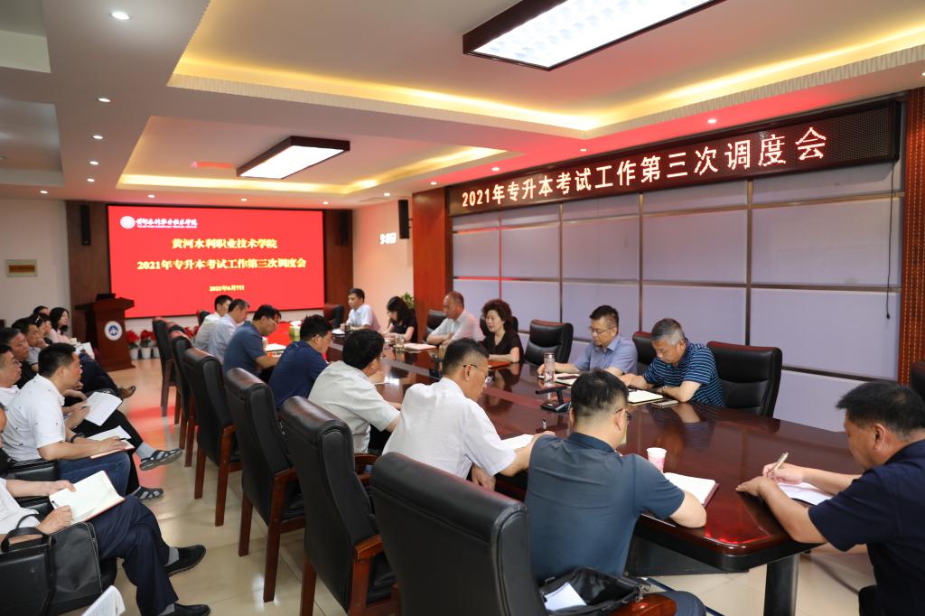 为进一步贯彻落实上级对全省专升本考试工作的批示精神,切实做好学校专升本考试组考工作,6月7日上午,学校在行政楼第一会议室召开2021年专升本考试工作第三次调度会。校领导周保平、杨士恒、刘卫锋、焦爱萍、刘玉宾、菅浩然出席会议,相关部门负责人和各学院党政负责人参会。会议由副校长菅浩然主持。