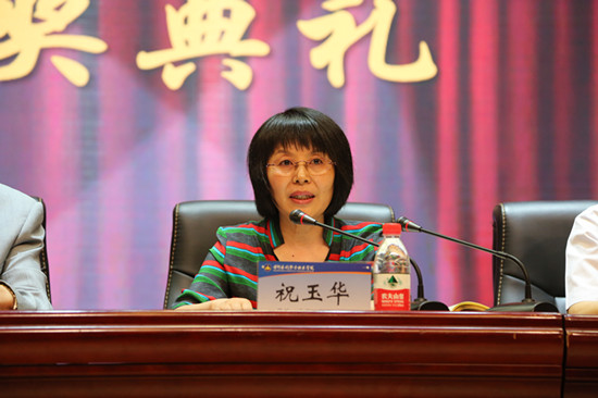 校党委副书记、校长祝玉华代表学校向张强武老师颁发捐赠证书