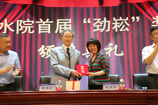 该校党委副书记、校长祝玉华作重要讲话。祝校长指出,“劲崧”奖学金的设立意义重大,它代表了一位老校友感恩母校的殷殷深情和拳拳之心,代表了一位老教师对后学者成长成才的殷切期盼和极大鼓舞。作为校友,张强武老师为学子们树立了榜样,激励广大学子树立“明天让学校以我为荣”的成才信念,增强“滴水之恩 涌泉相报”的感恩意识。作为教师,张强武老师为教师们树立了标杆,激励广大教师牢记使命,忠诚教育事业;传承创新,严谨治学治教;甘于奉献,醉心教书育人。祝校长对全校师生提出了以下三点要求:一是要志存高远,发奋学习。“劲崧”奖学金旨在激励学生勤勉刻苦、进取创新,积蓄深厚的发展潜力,成为国家栋梁之材,影响带动学校优良学风和浓厚学术氛围的形成,提升学校人才培养质量和社会声誉。全校师生要志存高远、躬身实践,将自己的人生理想与伟大而光荣的事业紧密联系起来。二是要心怀感恩,踏实做人。张强武老师的精神和境界是学校全体师生都要传承的精神财富。全校师生要心怀感恩、与梦同行,诚恳做人、踏实做事,以骄人的成就回报家人、母校和社会,最终实现自己的理想和抱负。三是要心系学校,奋勇前行。兴校强校,是全校师生都应担当的神圣职责。祝校长希望学子们刻苦学习,厚实基础,发奋图强,成长成才,让学校因你而荣!希望老师们立言立德,敬业精业,严谨务实,开拓进取,让学校因你而更强!最后,祝校长用张强武老师的心愿与师生共勉:衷心期盼黄河水院一代一代的师生像青青的翠竹,翠绿葱茏,摇曳多姿,以超群脱俗、傲然于世的清高圣洁形象为黄河水院成为全国技术应用型名校,乃至世界名校而努力奋斗!